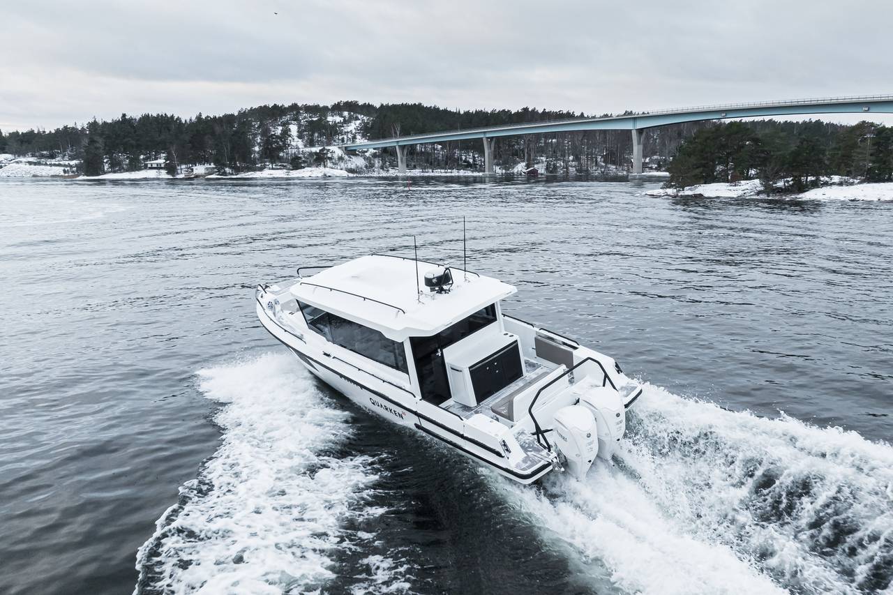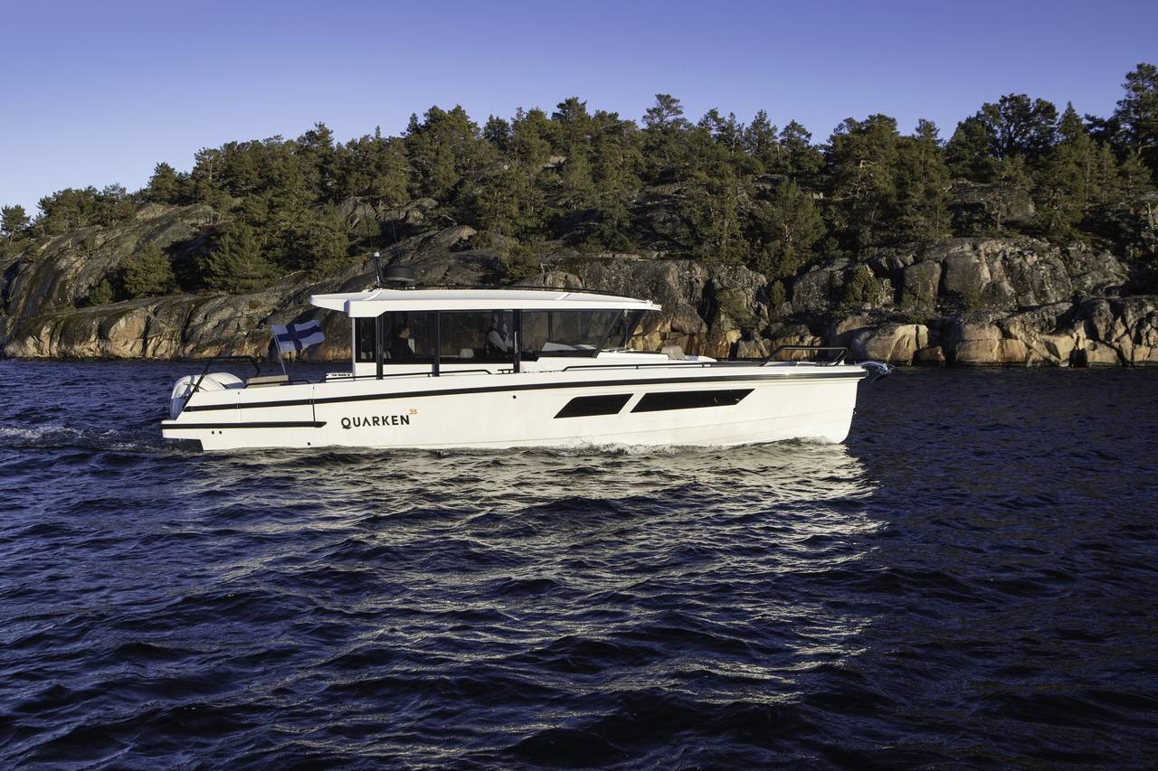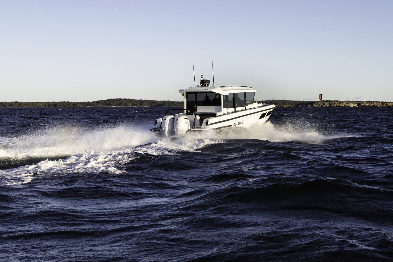 The 35 Cabin Tourer equates to the ultimate and sporty experience on the water. The clean, modern and sophisticated Nordic design combined with the agile, responsive and economical two-stage fuselage gives new meaning to driving in style.