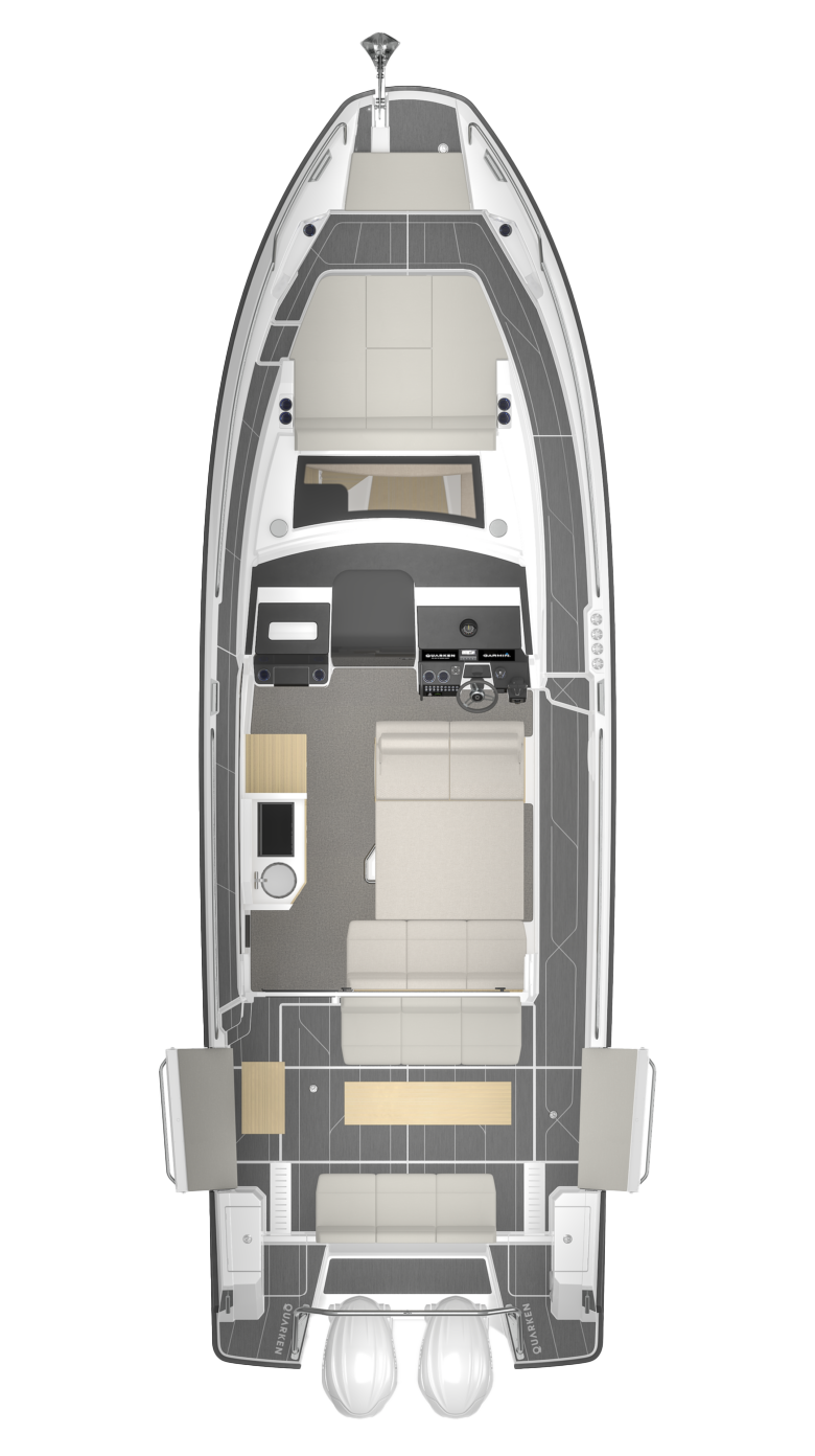The 35 Cabin Tourer is powered by the dual outboard motors of the F300, meeting all your performance needs. This pairing ensures a confident, dynamic and exciting drive.